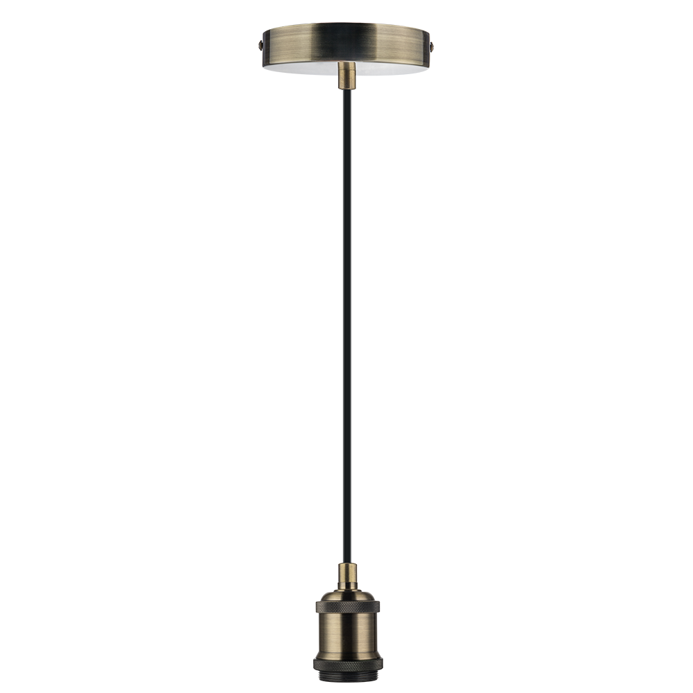Lampenfassung E27, Metall, Messing antik, 1.5 m Textilkabel gold, exkl. Leuchtmittel