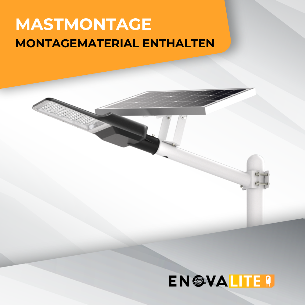 Das Gehäuse der Solar-Straßenleuchte PRO besteht aus hochwertigem Aludruckguss, was eine hervorragende Stabilität und Langlebigkeit gewährleistet. Es ist IP65-zertifiziert und somit staubdicht und gegen Strahlwasser geschützt. Das Gehäuse hält selbst den anspruchsvollsten Wetterbedingungen stand und gewährleistet eine zuverlässige Funktion der Leuchte über lange Zeiträume.