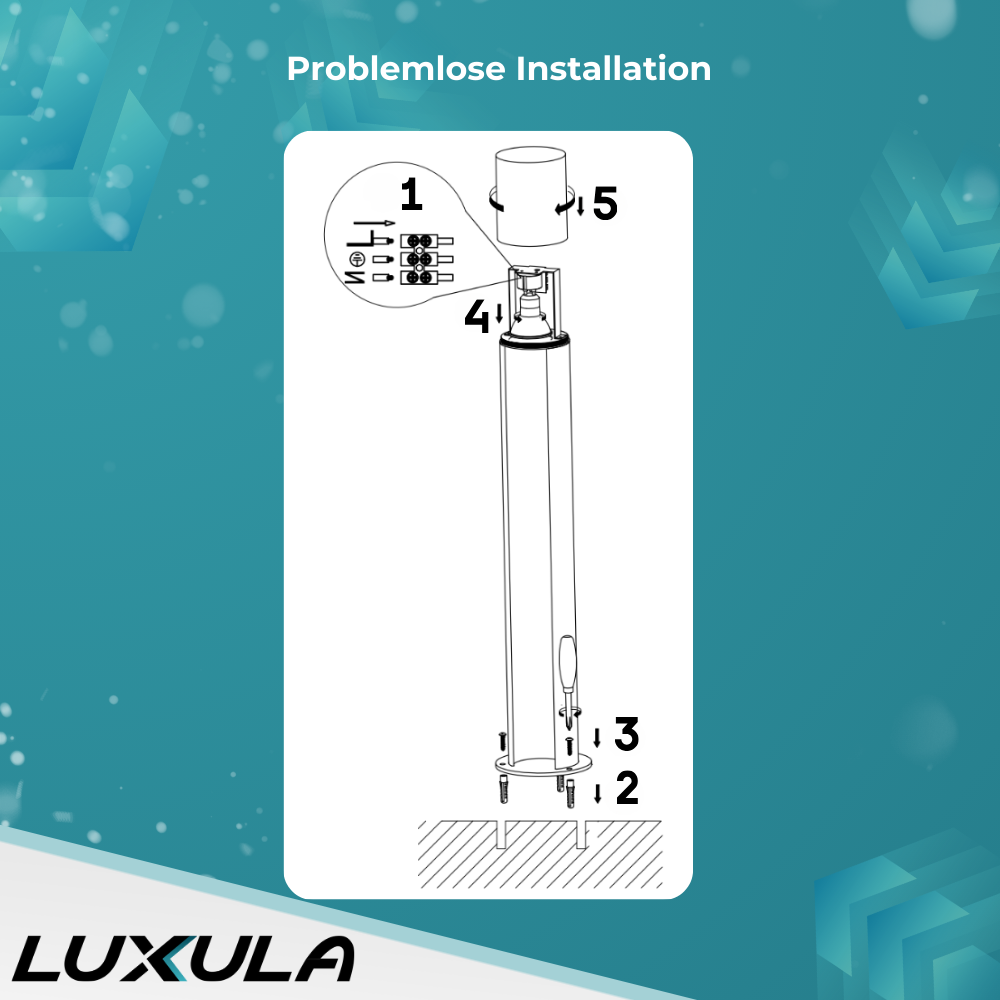 Verleihen Sie Ihrem Garten, Ihrer Terrasse oder Ihrem Eingangsbereich mit der edlen Wegeleuchte von LUXULA das perfekte Ambiente. Diese hochwertige Außenleuchte aus robustem Aluminium kombiniert stilvolles Design mit hoher Funktionalität und ist damit die ideale Wahl für anspruchsvolle Beleuchtungslösungen. Mit ihrer schwarzen, modernen Optik und der durchdachten Konstruktion überzeugt sie sowohl optisch als auch technisch.