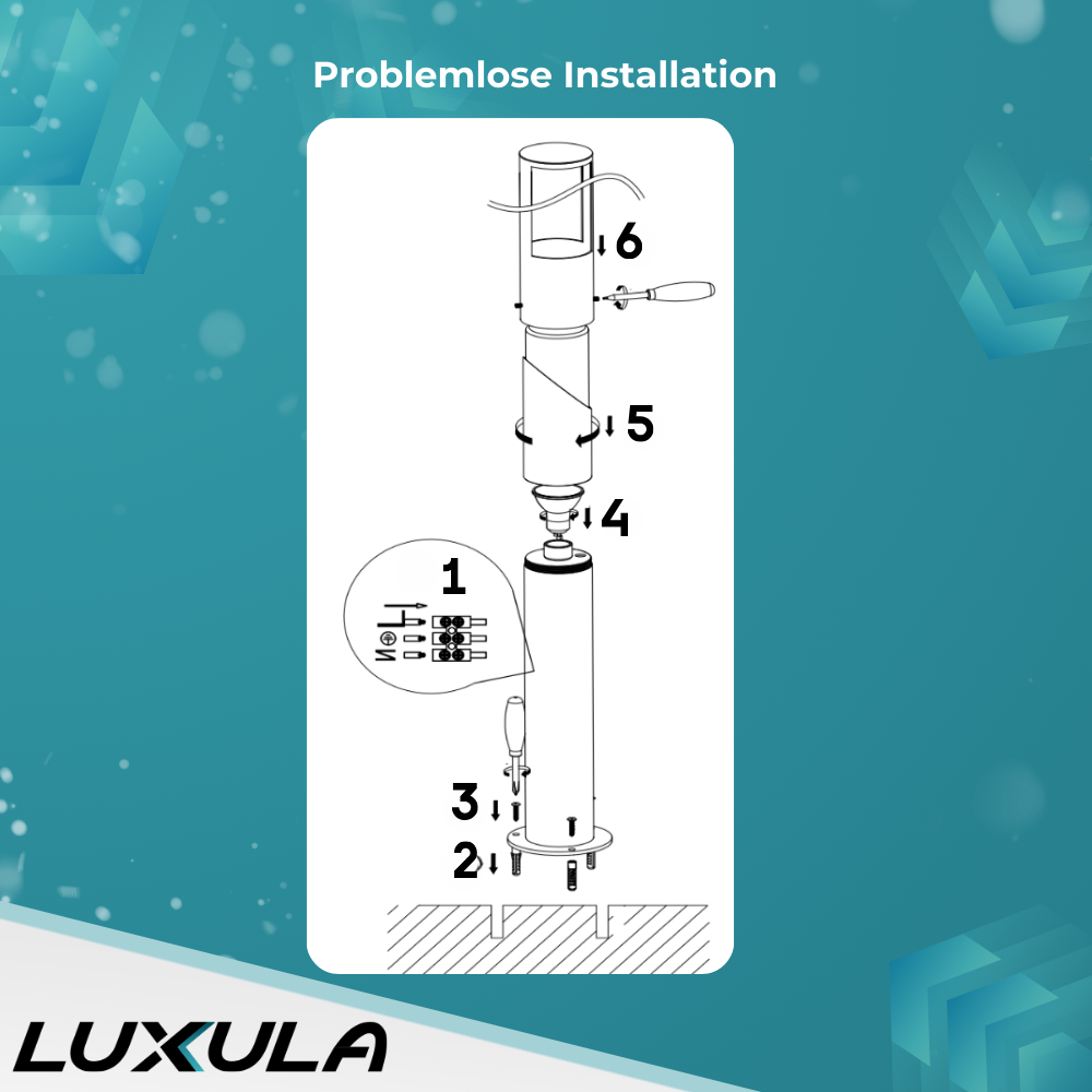 Mit ihrer Schutzart IP44 ist die Wegeleuchte perfekt für den Außenbereich geeignet. Ob als elegante Akzentbeleuchtung im Garten oder als funktionale Wegmarkierung – die LUXULA Wegeleuchte kombiniert Stil und Praktikabilität. Der mitgelieferte Erdspieß sorgt für eine einfache Installation und festen Halt in verschiedenen Böden.