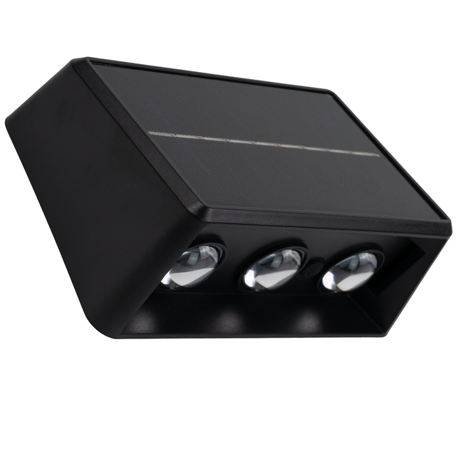 LUXULA Solar LED-Wandleuchte Up/Down, 2-flammig oder 3-flammig, CCT, IP54 – Außenleuchte mit Akku und Solarpanel in Schwarz