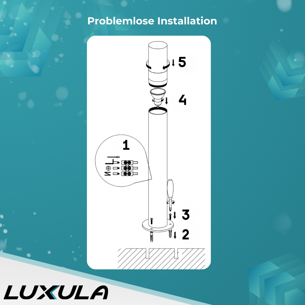 Mit einer Höhe von 63 cm ist die LUXULA Wegeleuchte ideal für die Beleuchtung von Gartenwegen, Terrassen oder Einfahrten. Der 360° Lichtkegel erzeugt eine angenehme Atmosphäre und sorgt für Sicherheit bei Dunkelheit. Die GU10-Fassung ermöglicht den Einsatz von energiesparenden LED-Leuchtmitteln, sodass Sie die Lichtstimmung individuell anpassen können – ob warmweiß für Gemütlichkeit oder kaltweiß für klare Sicht.