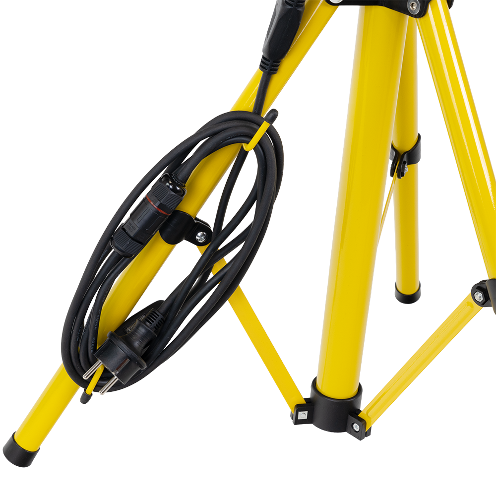 Dieser Baustrahler bietet maximale Flexibilität. Mit einem Schutzkontaktstecker und einem Ein/Aus Schalter (IP65) am Kabel kannst du den Strahler direkt ans Netz anschließen oder in eine Steckdose stecken. Die höhenverstellbare Stativkonstruktion ermöglicht eine Anpassung bis zu 1,75 Metern, während die integrierte Kabeltrommel Ordnung und Mobilität sichert.