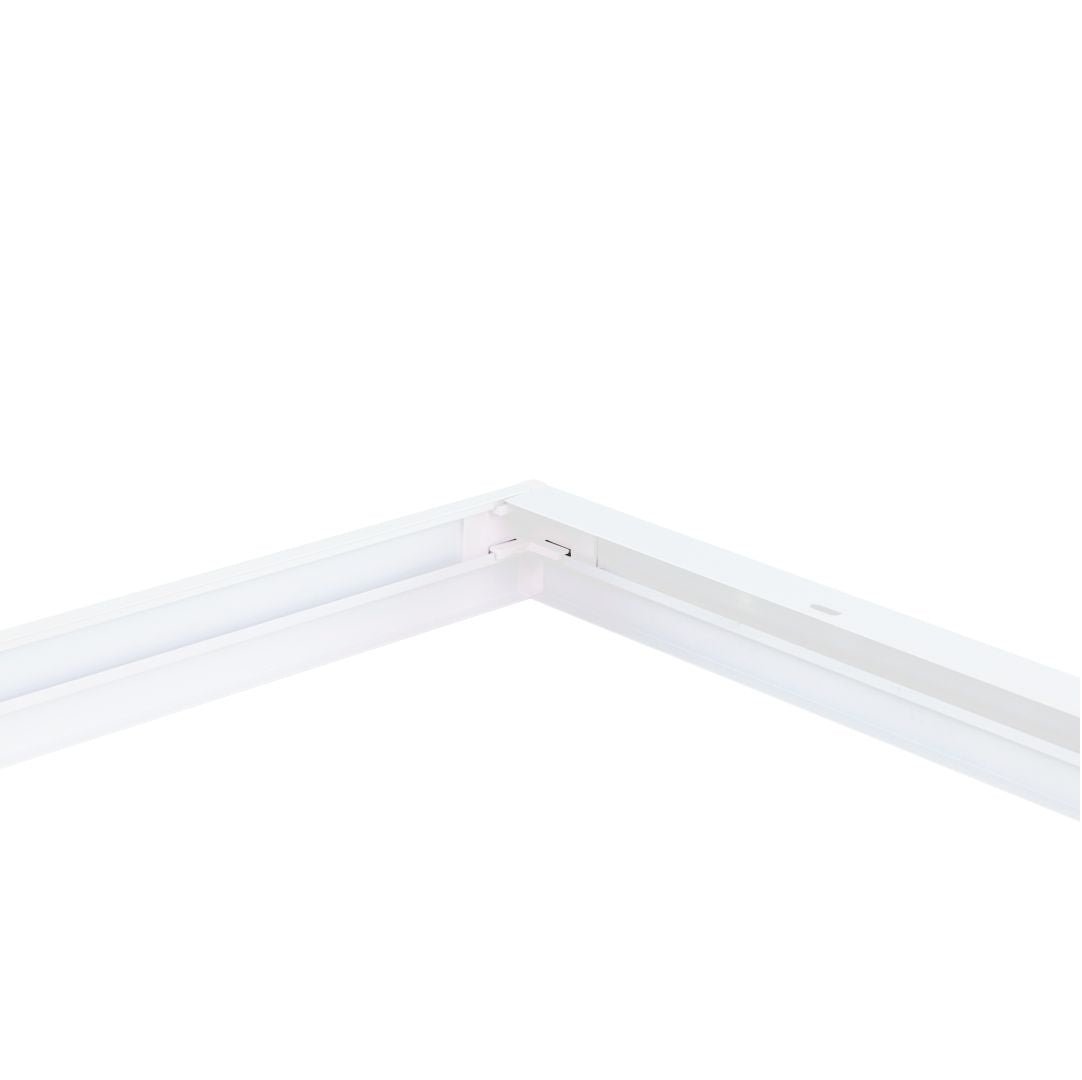 Der neue LED-Panelaufbaurahmen von LUXULA verwandelt alle handelsüblichen 120 x 30 cm LED-Einbaupanels in formschöne, moderne und stilvolle LED-Aufbauleuchten und das Beste daran - der Zusammenbau erfolgt komplett schraubenlos durch ein neuartiges Stecksystem. Auf diese Weise vermeiden Sie Arbeit beim Zusammenbau sowie unschöne und sichtbare Schrauben wie bei herkömmlichen Rahmen. Der Aufbaurahmen ist aus hochwertigem und weiß lackiertem Aluminium gefertigt und passt sich dezent jeder Räumlichkeit an. Stecken Sie den Rahmen einfach zusammen, montieren ihn an der gewünschten Wand oder Decke und schieben das LED-Panel in den Rahmen ein.