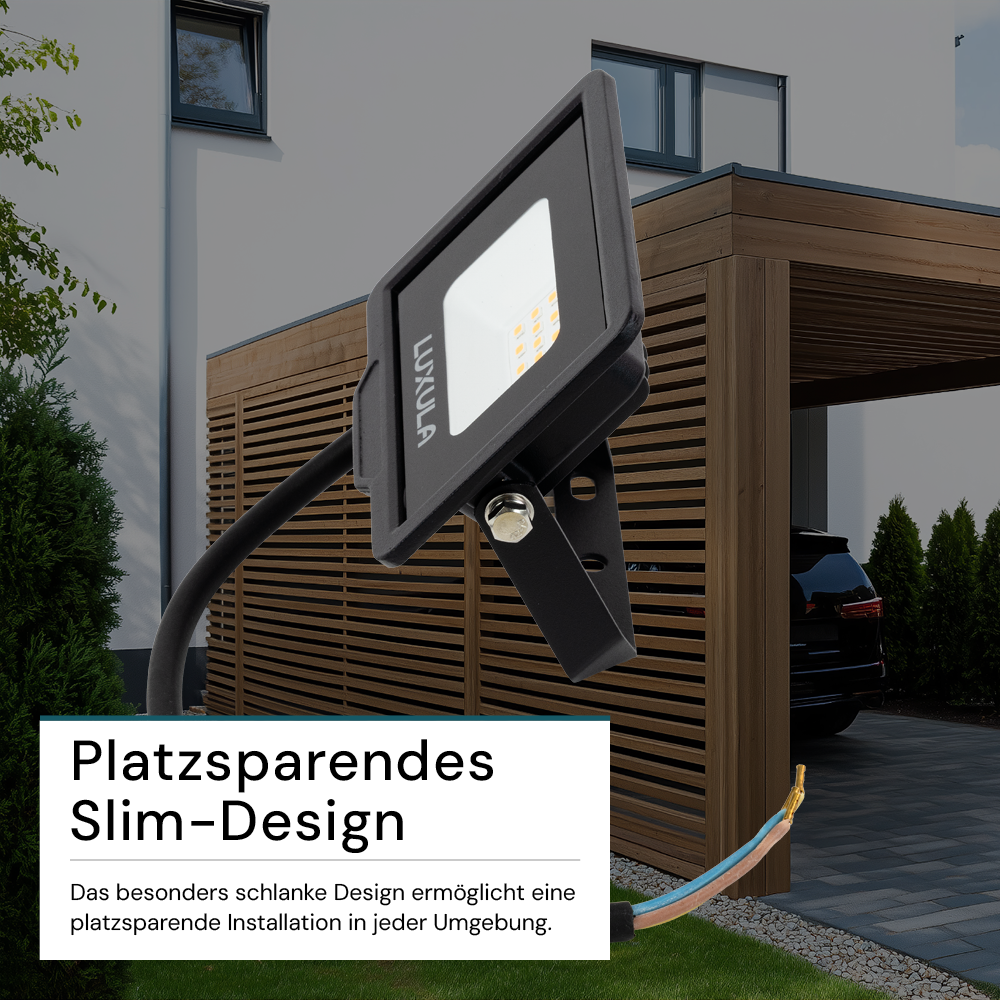 Entdecken Sie den neuen LED-Fluter von LUXULA - die perfekte Lösung für eine effiziente und zuverlässige Beleuchtung im Innen- und Außenbereich. Mit einem Abstrahlwinkel von 100° sorgt der Fluter für eine großflächige und gleichmäßige Beleuchtung Ihrer Umgebung. Der Strahler liefert 100 Lumen pro Watt, was zu einer sehr energieeffizienten Beleuchtung führt. Erhältlich in zwei verschiedenen Farbtemperaturen (warmweiß und neutralweiß), können Sie die Farbtemperatur auswählen, die am besten zu Ihren Bedürfnissen passt. Der Fluter von LUXULA ist mit hochwertigem EPISTAR LED ausgestattet, die für eine beeindruckende Helligkeit und eine gleichmäßige Lichtverteilung sorgen. Dank seines breiten Anwendungsspektrums ist die Leuchte äußerst vielseitig einsetzbar. Ob in Gewerbe- oder Wohnräumen, in Gartenanlagen oder bei Veranstaltungen, dieser LED Flutlicht bietet Ihnen eine hervorragende Beleuchtungslösung. Er eignet sich ideal für die Akzentbeleuchtung, die Sicherheitsbeleuchtung oder die Ausleuchtung großer Flächen.