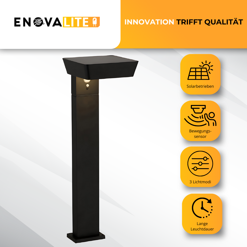 Erleben Sie mit der ENOVALITE LED Solar Wegeleuchte eine innovative Lösung für eine effiziente und stilvolle Beleuchtung im Außenbereich. Mit ihrem eleganten Design und hochwertigen Materialien setzt diese Leuchte nicht nur optische Akzente, sondern überzeugt auch durch fortschrittliche Technologie und hohe Funktionalität.