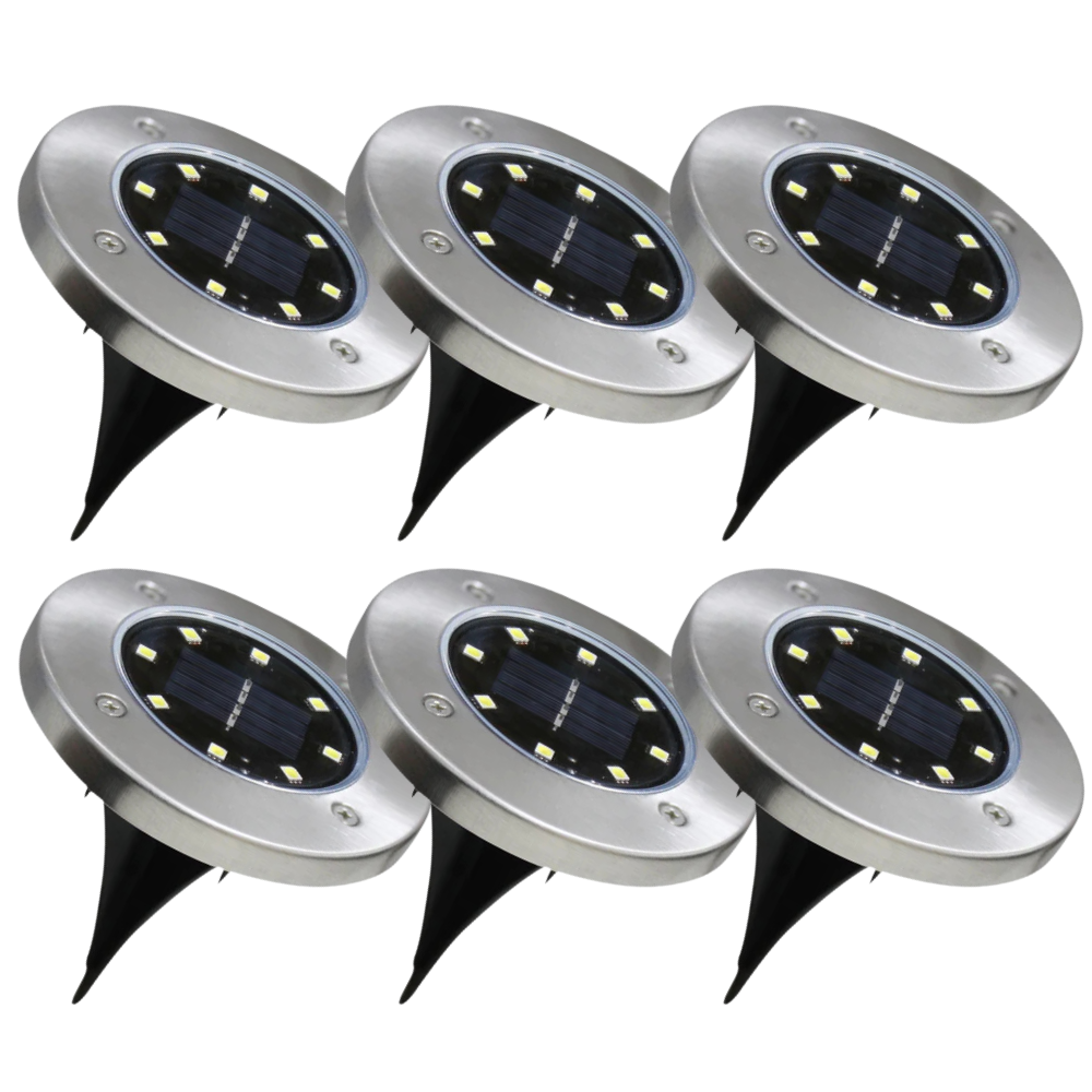 6er-Pack Solar Bodenleuchte, 6 Stunden Leuchtdauer, 4000 K (neutralweiß), IP44-Wasserdicht, Edelstahl