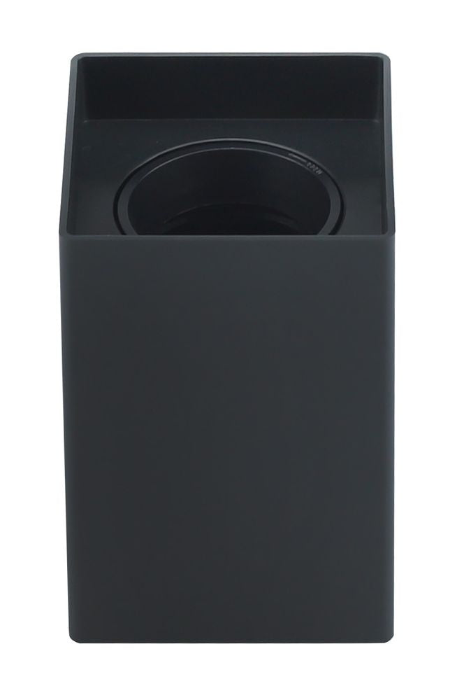 Schwenkbarer, eckiger Aufbauspot aus Kunststoff für GU10 oder MR16 Leuchtmittel in der Farbe schwarz.