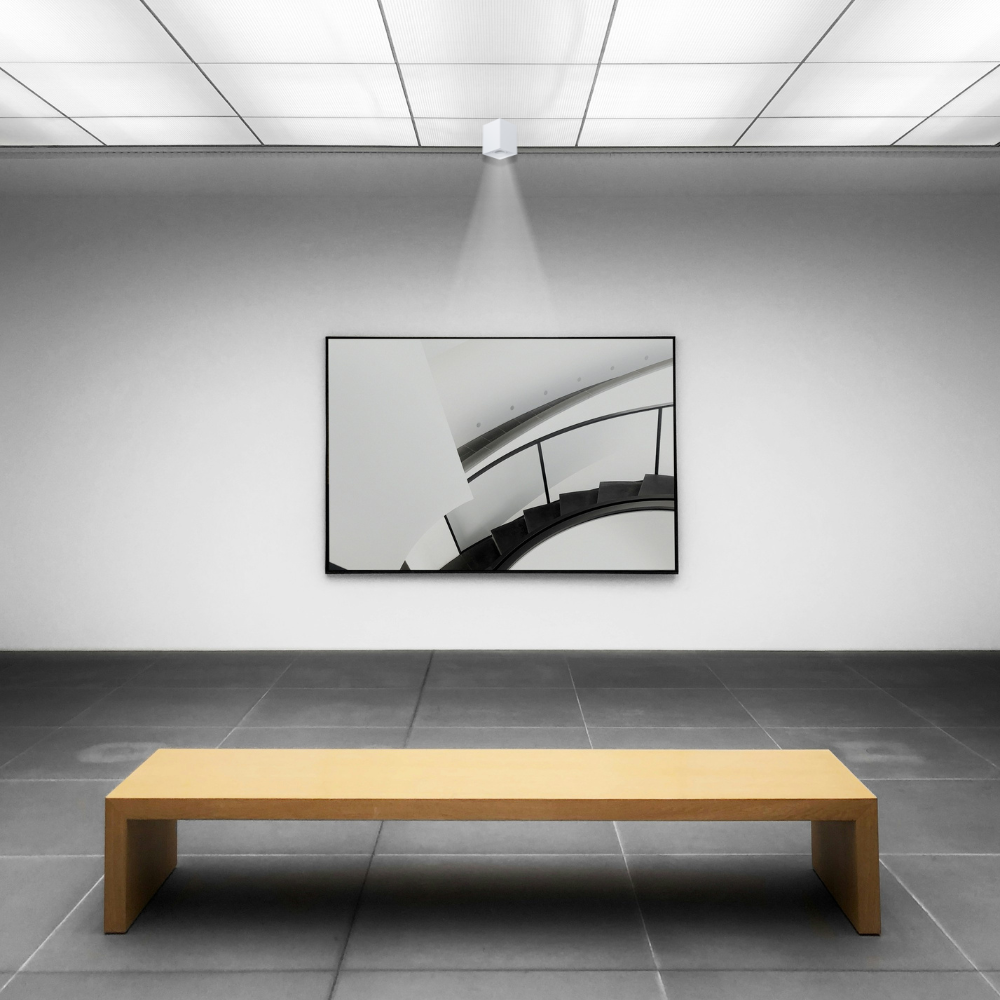 Schwenkbarer, eckiger Aufbauspot aus Kunststoff für GU10 oder MR16 Leuchtmittel in der Farbe weiß.