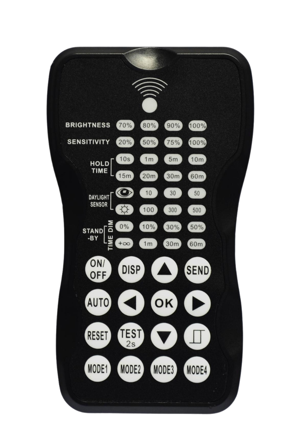 Optional ist eine kompatible Fernbedienung erhältlich (Artikel:ELED900500), die eine noch präzisere Steuerung des integrierten Bewegungssensors ermöglicht. Mithilfe dieser Vorrichtung können sämtliche Sensorfunktionen bequem vom Boden aus eingestellt werden, ohne dass aufwendige Arbeiten in großer Höhe erforderlich sind.