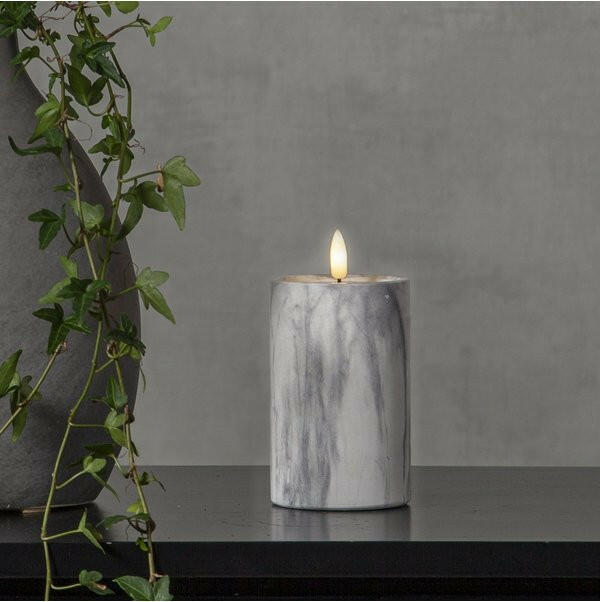 Dekorative LED Stumpenkerze in Betonoptik und natürlicher Flamme