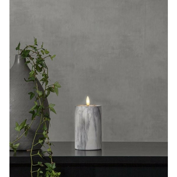 Diese schöne Kerze in Betonoptik mit Marmormuster aus unserer Flamme-Serie, leuchtet mit einer natürlichen Flamme in warmweiß. Sie eignet sich perfekt zur Dekoration im Alltag sowie für Partys. Der integrierte Timer lässt die LED-Kerze 6 Stunden leuchten und schaltet sich anschlließend für 18 Stunden selbständig aus.