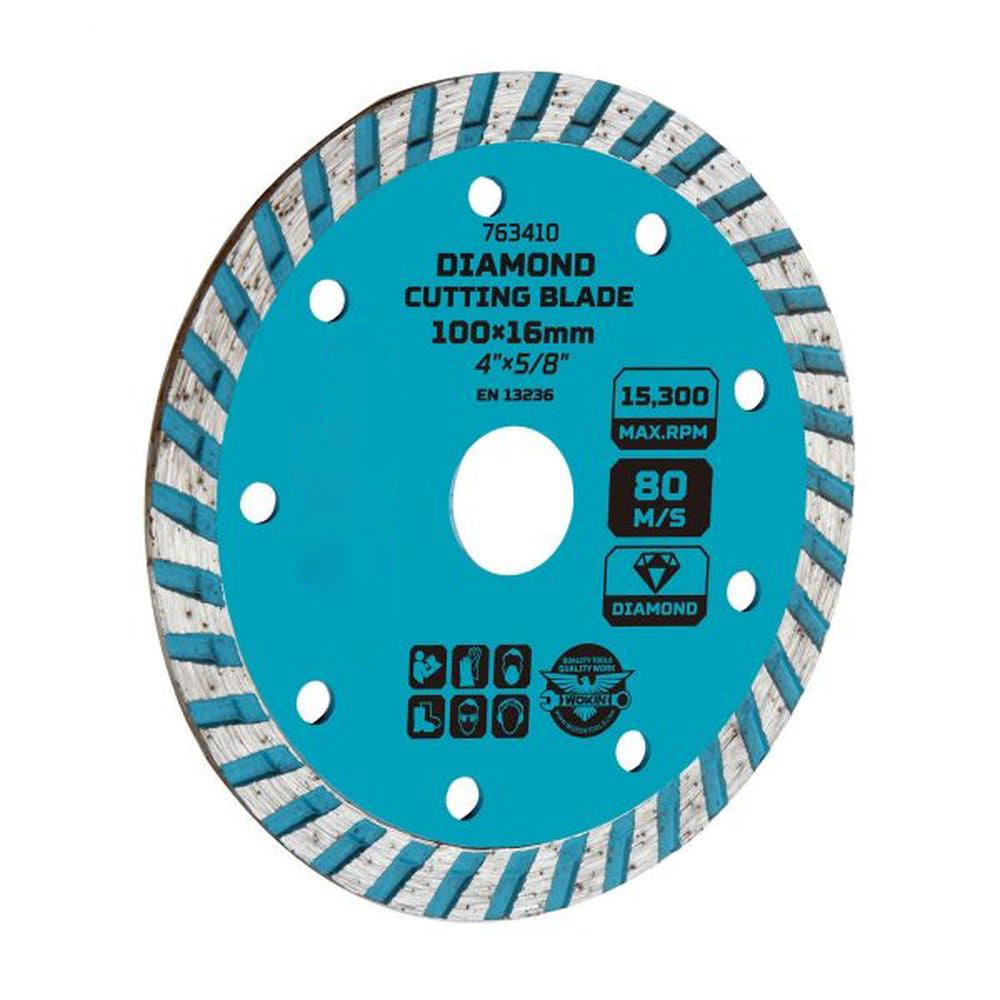 Die Diamant-Trennscheibe von WOKIN mit Industrie-Finish eignet sich ideal für Trocken- und Nassschnitte beim Bearbeiten von Beton und anderen Baumaterialien.