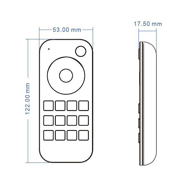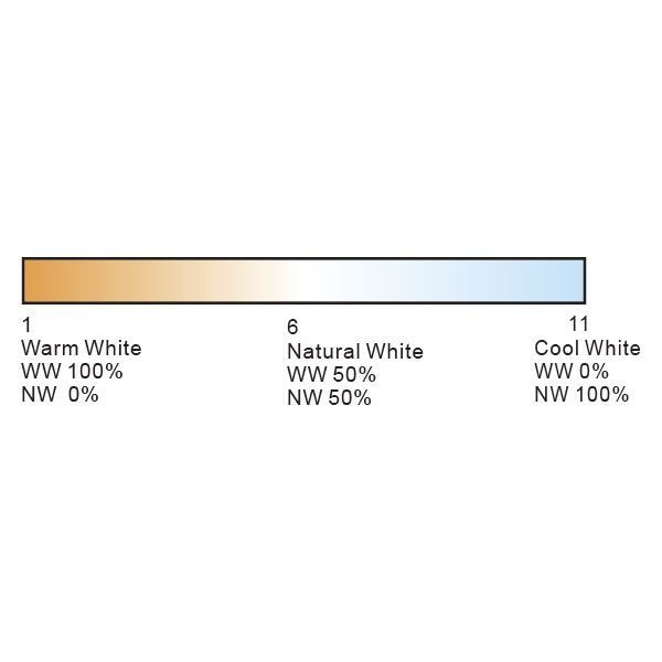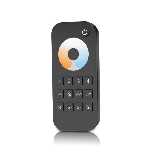 Mit dieser Fernbedienung können LED-Streifen mit zwei Lichtfarben angesteuert werden. Zum Beispiel Warmweiß und Kaltweiß. Diese Fernbedienung ermöglicht damit eine Mischung der Lichtfarben.