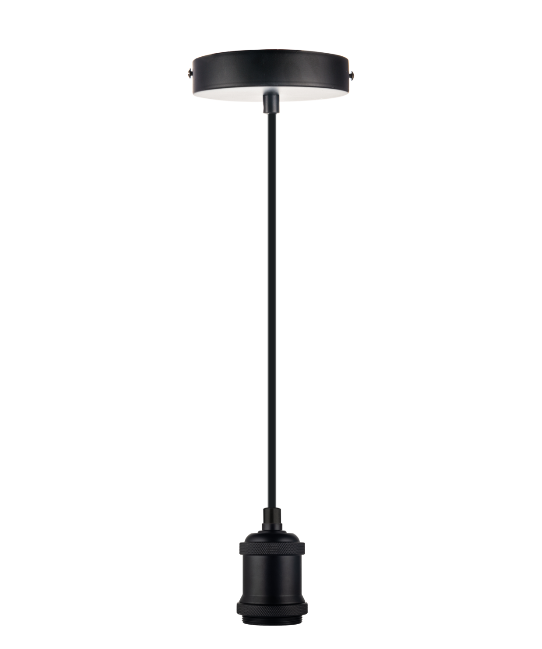 Lampenfassung E27, Metall, schwarz, 1.5 m Textilkabel schwarz, exkl. Leuchtmittel