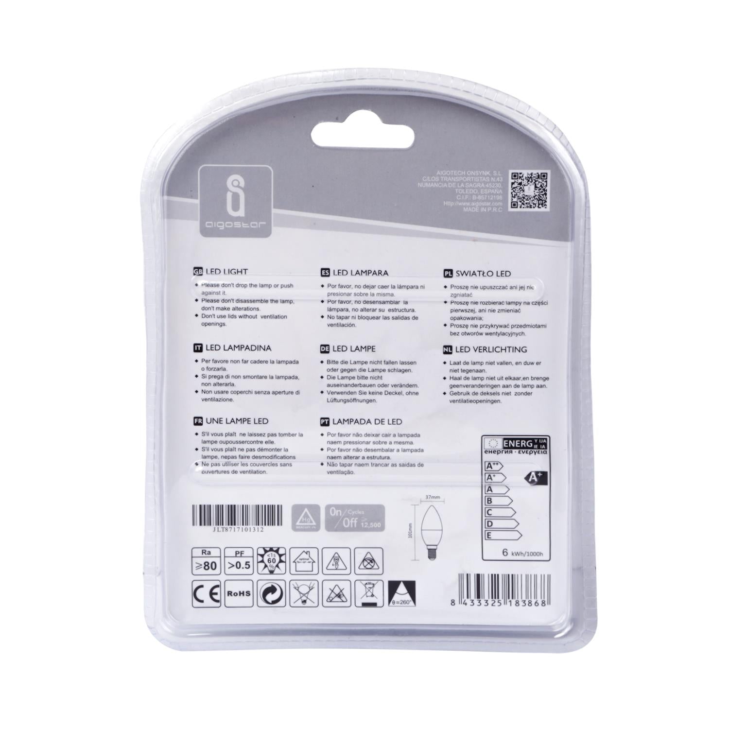 LED Leuchtmittel mit einem E14 Sockel, 6 Watt Leistung, einem Lichtstrom von 500 lm und in der Lichtfarbe warmweiß (6400 K). Das LED Leuchtmittel ist sehr energieffizient. Die hochwertig verwendeten Materialien und der hohe Farbwiedergabeindex von Ra>80 stehen für eine gute Farbqualität und ein Abstrahlwinkel von 260° für eine perfekte Ausleuchtung Ihrer Räumlichkeiten.