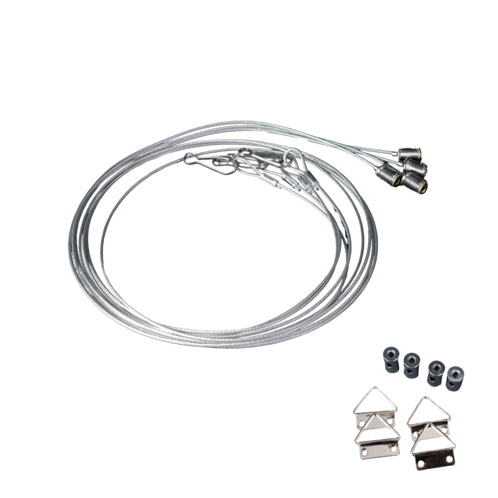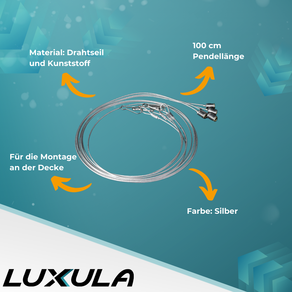 Drahtseilaufhängung für LED-Panels mit 1 m Länge zum Abhängen von LED-Panels von der Decke.