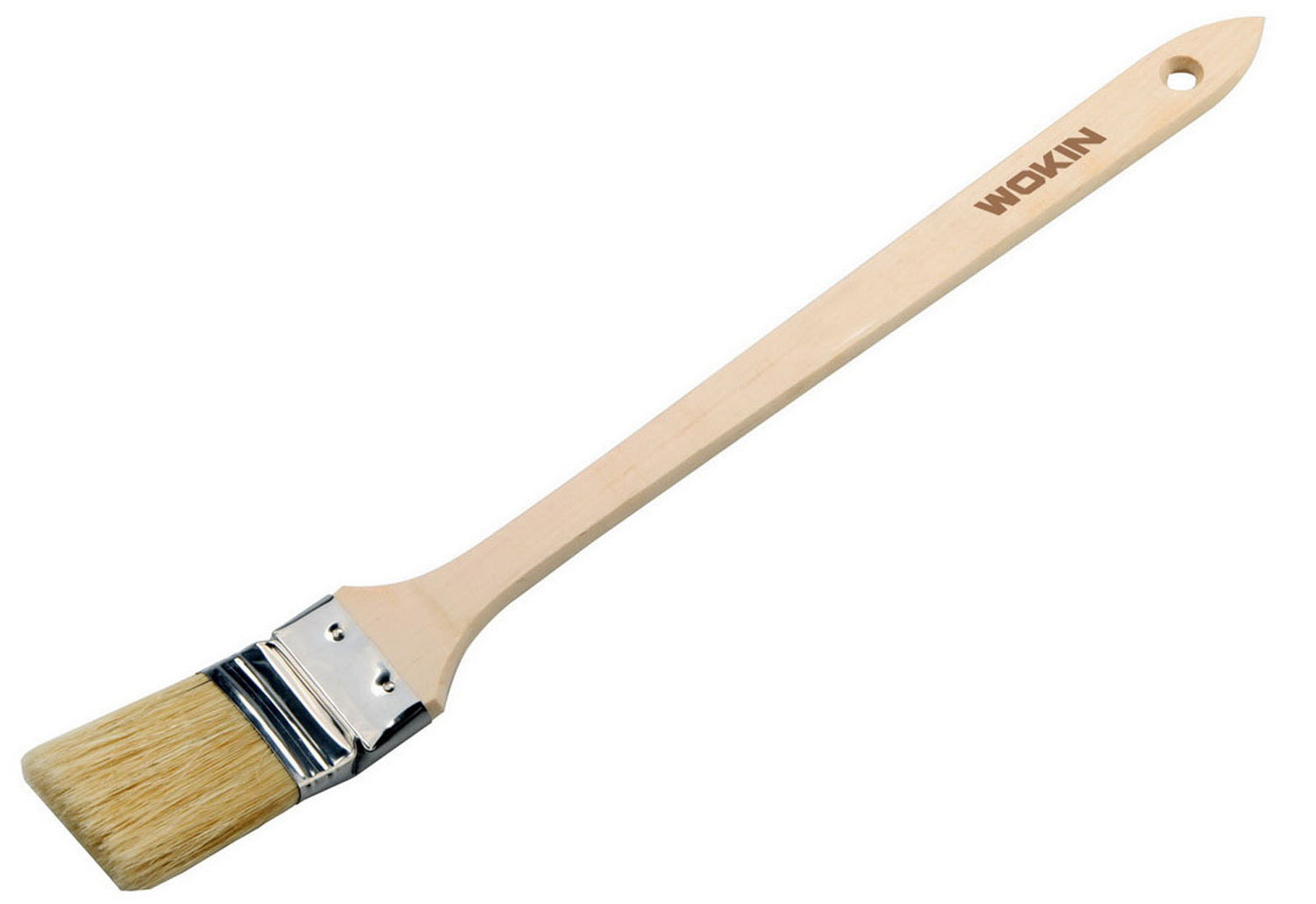 Der Plattpinsel von WOKIN besteht aus einem flachen Pinsel mit gebogenem Kopf und eignet sich ideal für Lackierarbeiten auf verschiedenen Oberflächen. Mit dem praktischen Holzgriff mit Aufhängelochsowie den Kunstborsten in verchromter Zwinge ist der Pinsel besonders langlebig.