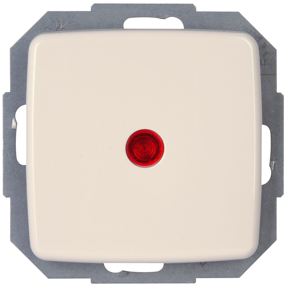 Der Kontrollschalter (Aus-/Wechselschalter) aus der Serie RIVO mit einer Nennspannung von 250 VAC und einem Schaltvermögen von 10 AX. Der Kontrollschalter ist mit Linse und einer Glimmlampe in Rot ausgestattet. Für Schutzklasse IP20 geeignet.