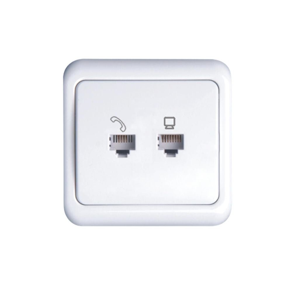 Steckdose für 1 Telefon- und 1 Datenendgerät in der Farbe weiß.