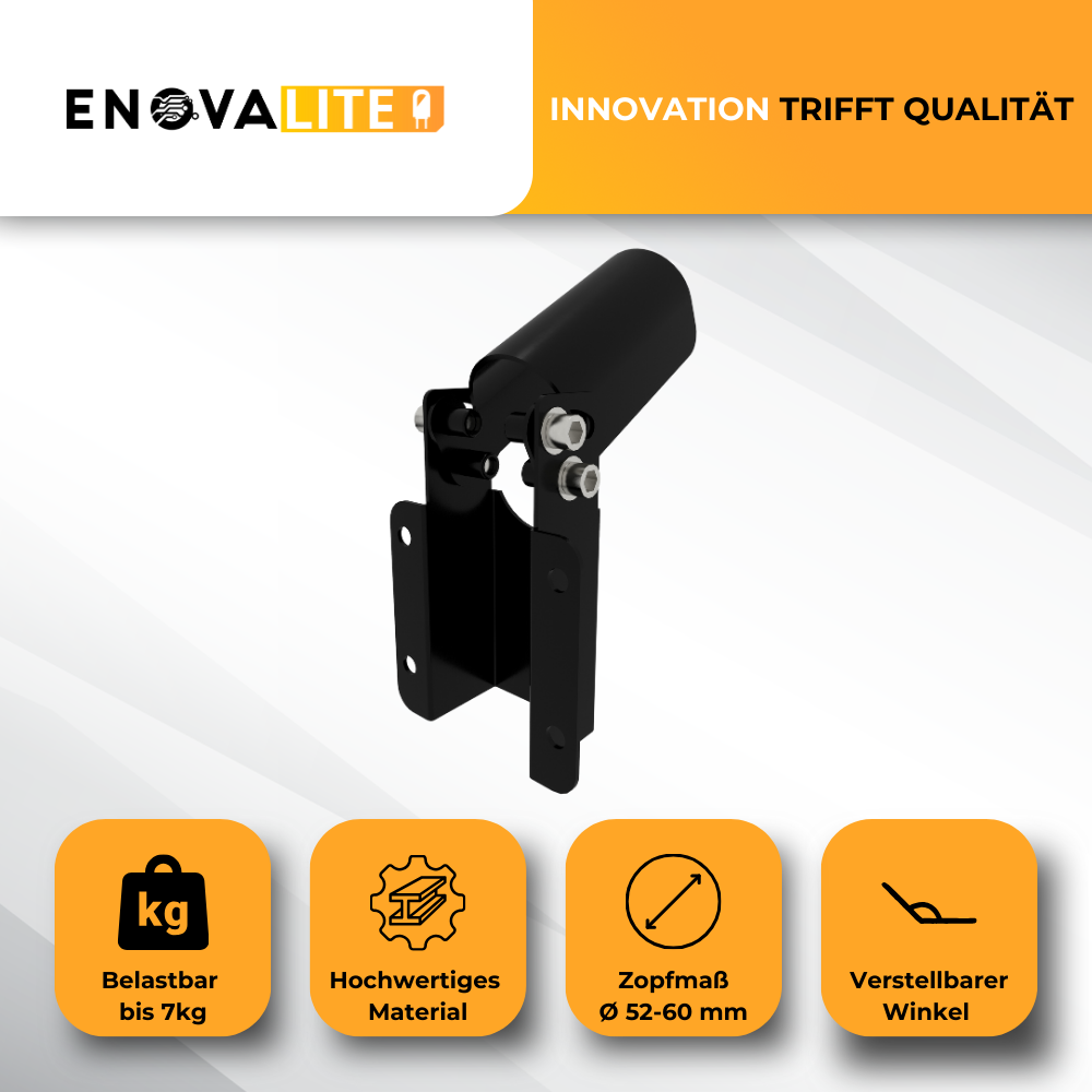 Er ist damit die ideale Ergänzung für Projekte, die eine präzise Ausrichtung von Streetlight-Gehäusen oder kompakten Fluter-Lösungen mit Ø52–60 mm benötigen – ohne Kompromisse bei Stabilität und Ausrichtung. Gleichzeitig bleibt die elektrische Seite unberührt: Das Leuchtmittel bzw. das Leuchteninnere wird nicht verändert, es geht ausschließlich um die sichere, variable Befestigung. Als reines Montagesystem ersetzt der Adapter keine Aufbauleuchte, Einbauleuchte oder Panel-Systeme, sondern ergänzt mastbasierte Außenleuchten um eine saubere Wandlösung.