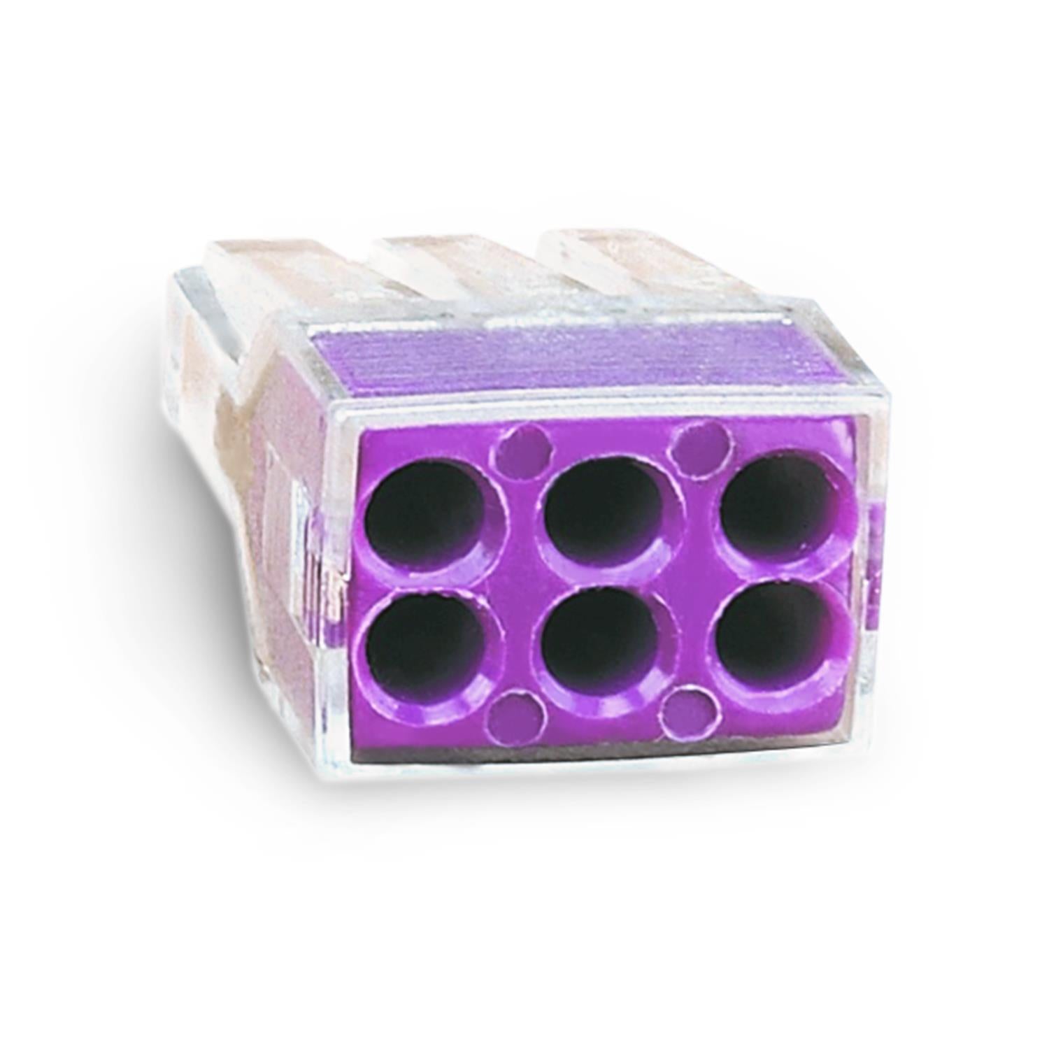 6-polige transparent-lilane Verbindungsklemmen CMK-106 zum Verbinden von 5 oder mehr Kabeln.