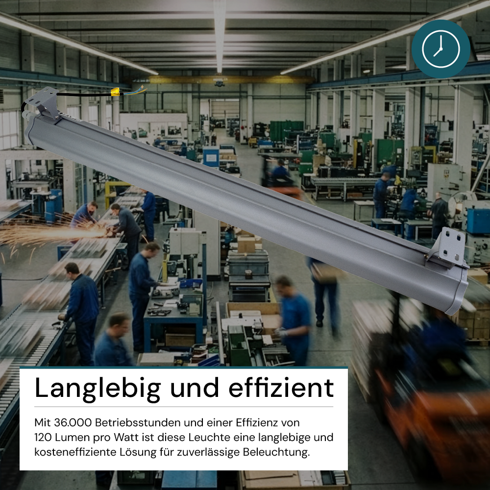 • Unkomplizierte und schnelle Installation: Dank der innovativen Technologie (Quick Connector) ist die Installation dieser LED-Hallenbeleuchtung schnell und einfach.