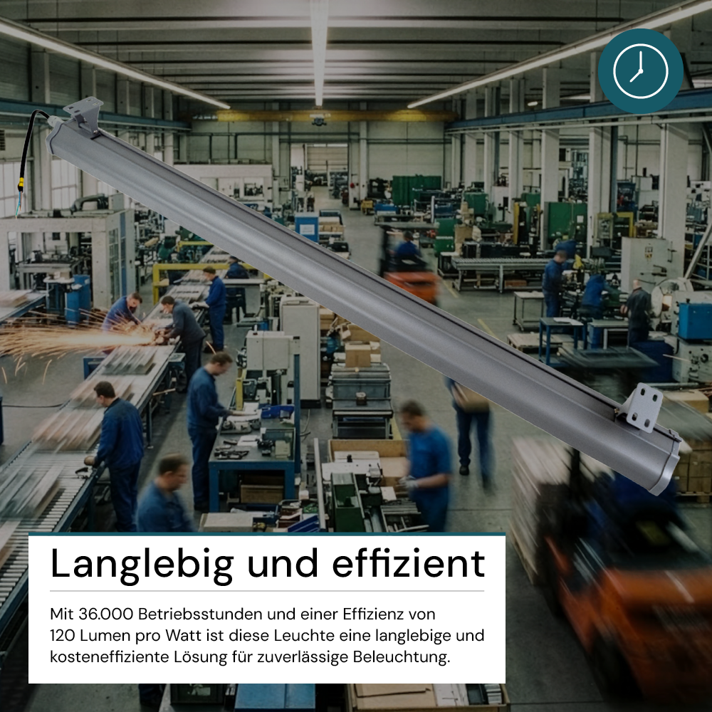 Die neue LUXULA linear Hallenleuchte ist die ideale Lösung für eine helle und energiesparende Beleuchtung in Ihrer Halle. Die graue Farbe und lineare Form passt perfekt zu jedem industriellen Umfeld und dank des Abstrahlwinkels von 120x60° wird eine gleichmäßige Ausleuchtung garantiert. Mit 120 Lumen pro Watt und einer Farbtemperatur von 5000 Kelvin (neutralweiß) erhalten Sie eine hohe Lichtqualität, die den natürlichen Tageslichtverhältnissen entspricht. Der Strahler verfügt über einen Quick Connector, der eine schnelle und unkomplizierte Installation ermöglicht. Auch bestehende Zuleitungen können problemlos angeschlossen werden, was Zeit und Kosten spart. Erleben Sie eine hervorragende Beleuchtung mit der LUXULA Hallenbeleuchtung - perfekt für industrielle Anwendungen, Lagerhallen, Fabriken und andere Räumlichkeiten, in denen eine effektive und zuverlässige Beleuchtung erforderlich ist.