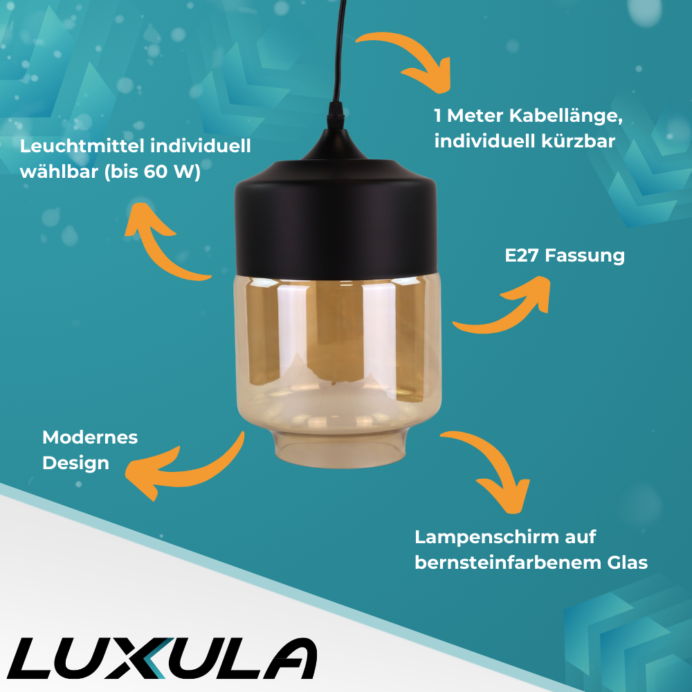 Tauchen Sie Ihr Zuhause in ein warmes und einladendes Licht mit unserer LED-Hängelampe in eleganter Schwarzglasoptik.