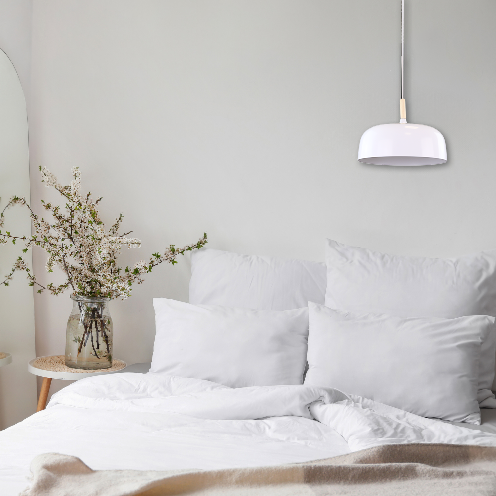 Tauchen Sie Ihr Zuhause in ein warmes und einladendes Licht mit unserer LED-Hängelampe in elegantem Weiß.