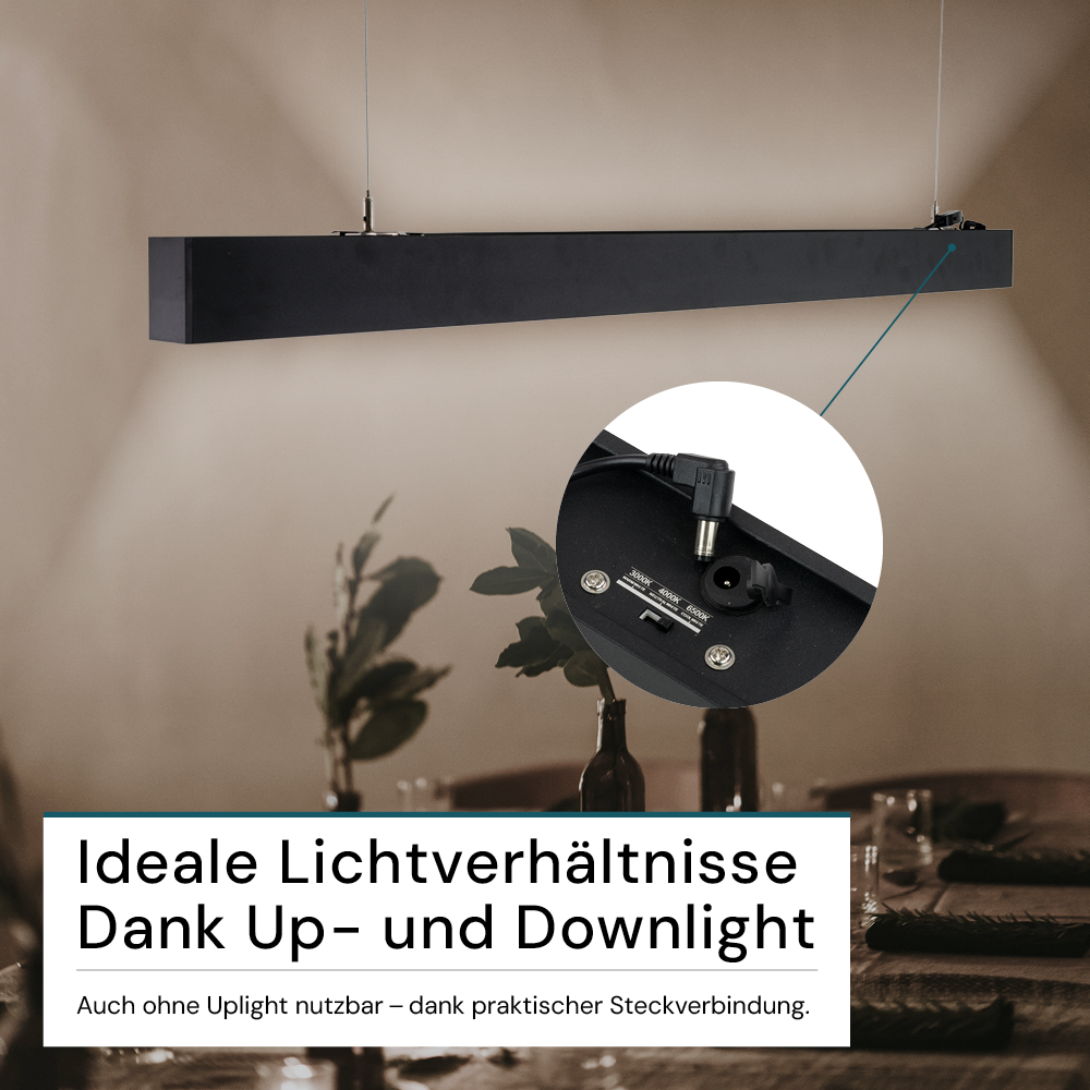 3er-Pack LED Büro-/Tresenleuchte Up&Down, schwarz, 120 cm, 30 W, 3600 lm, UGR<19, 3000-6500 K (CCT), LIFUD Netzteil, erweiterbar, Aluminium