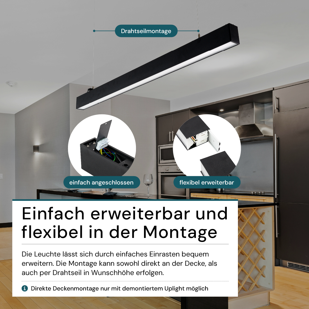 Erweiterbar und schnell konnektierbar: Verbinden Sie mehrere LUXULA Leuchten für größere Flächen und eine gleichmäßige Ausleuchtung. Die Montage und Erweiterung sind einfach und ohne Aufwand möglich.