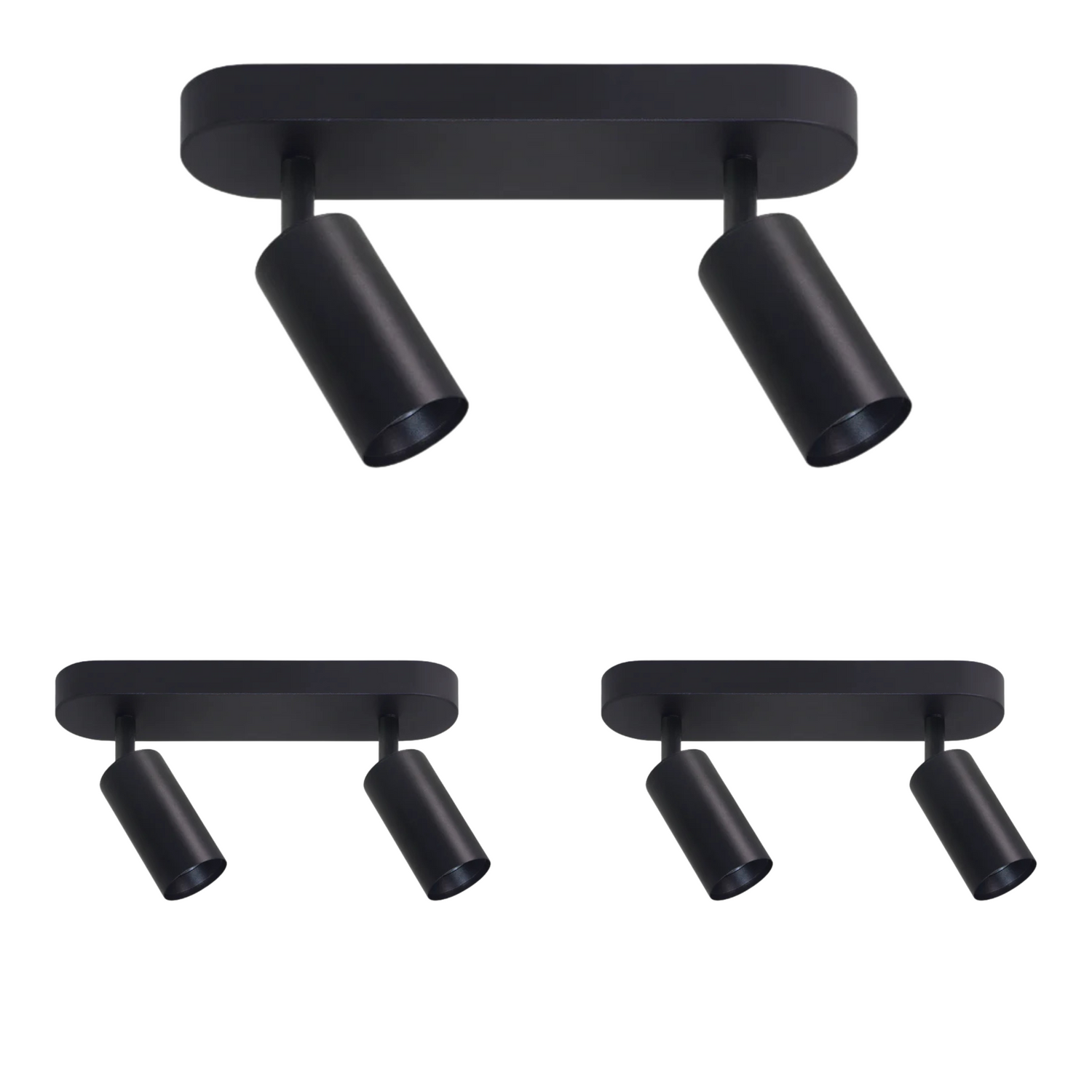 3er Pack Schwenkbarer LED Aufbauspot mit GU10 Fassung, 2-flammig, schwarz, IP20, Aluminium Schwenkbarer LED-Aufbauspot LUXULA – Flexibles Lichtdesign in Schwarz und Weiß, 2-flammig 2-flammiges Design für doppelte Flexibilität: Individuell schwenkbare Leuchtenköpfe ermöglichen eine gezielte Beleuchtung in verschiedene Richtungen. Hochwertige Verarbeitung: Robustes Aluminiumgehäuse in Schwarz oder Weiß für zeitloses Design und Langlebigkeit. Flexibles Licht: GU10-Fassung, kompatibel mit energiesparenden LED-Leuchtmitteln, für eine anpassbare Beleuchtung.Der LED-Aufbauspot von LUXULA in einer 2-flammigen Variante erhältlich und bietet noch mehr Flexibilität für modernes Lichtdesign. Mit seiner schwenkbaren Konstruktion und hochwertigen Verarbeitung ist er die ideale Lösung für Wohnräume, Büros oder Geschäftsräume. Erhältlich in Schwarz und Weiß, passt er sich nahtlos an jede Einrichtung an und bietet eine effektive Ausleuchtung größerer Bereiche.Die 2-flammige Variante des LUXULA LED-Aufbauspots bietet doppelte Flexibilität für Ihre Beleuchtungsanforderungen. Ob in Wohnräumen, zur Ausleuchtung von Arbeitsbereichen oder als Akzentbeleuchtung in Fluren – dieser Spot ist die perfekte Wahl. Jeder Leuchtenkopf ist individuell schwenkbar, sodass Sie verschiedene Bereiche gleichzeitig ausleuchten oder fokussierte Lichtakzente setzen können.Mit der GU10-Fassung können Sie energiesparende LED-Leuchtmittel in verschiedenen Farbtemperaturen nutzen, die perfekt auf Ihre Bedürfnisse abgestimmt sind. Das robuste Aluminiumgehäuse sorgt für eine lange Lebensdauer und verleiht der Leuchte eine elegante Optik. Erhältlich in klassischem Weiß oder modernem Schwarz fügt sich der Spot mühelos in jeden Einrichtungsstil ein.Die 2-flammige Konstruktion macht diesen Spot besonders geeignet für größere Räume oder Bereiche, in denen eine flexible Beleuchtungslösung erforderlich ist. Auch verwendbar als: Pendellampe, Hängelampe, Pendelleuchte, Hängeleuchte, Deckenleuchte, Deckenlampe, Deckenstrahler, Aufbauspot, Deckenspot