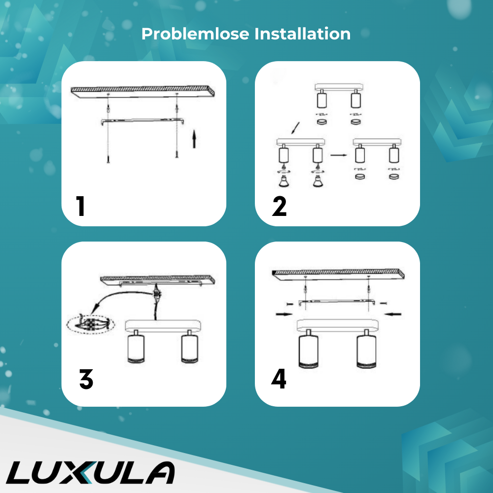 Die 2-flammige Variante des LUXULA LED-Aufbauspots bietet doppelte Flexibilität für Ihre Beleuchtungsanforderungen. Ob in Wohnräumen, zur Ausleuchtung von Arbeitsbereichen oder als Akzentbeleuchtung in Fluren – dieser Spot ist die perfekte Wahl. Jeder Leuchtenkopf ist individuell schwenkbar, sodass Sie verschiedene Bereiche gleichzeitig ausleuchten oder fokussierte Lichtakzente setzen können.