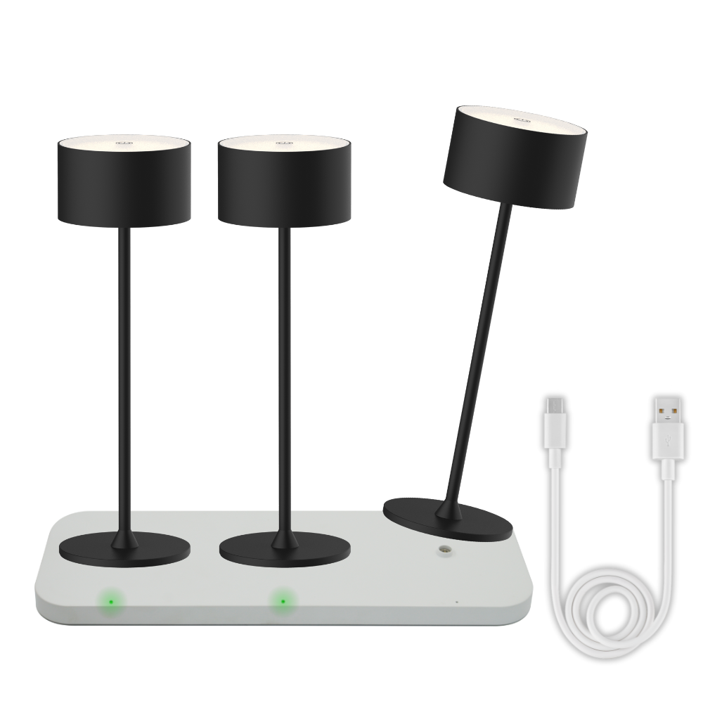 3er Set LED-Tischleuchte mit Akku, inkl Ladestation, Up- & Downlight, Dimm- & CCT-Funktion, schwarz, wiederaufladbar, Innen und Außenbereich, IP44, USB-C ist in Kürze wieder verfügbar. Für Vorbestellungen kontaktieren Sie uns gerne.