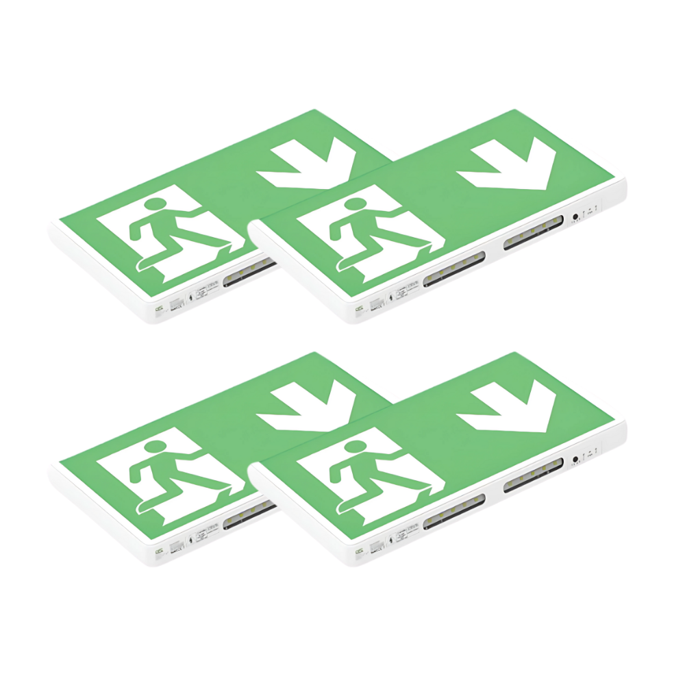 4er Pack LED-Fluchtwegleuchte, Notausgang mit Notstromeinheit, Anti Panik Licht, TEST-Funktion, Wandmontage