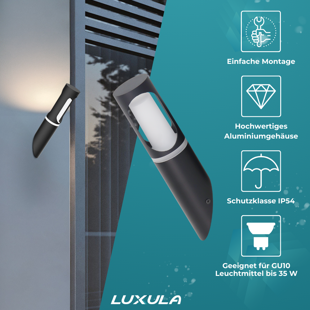 Die LUXULA Wandleuchte kombiniert ein minimalistisches, zeitloses Design mit hochwertiger Verarbeitung. Diese vielseitige Leuchte ist für den Einsatz im Innen- und Außenbereich geeignet und sorgt überall für eine stilvolle und funktionale Beleuchtung. Ob am Hauseingang, auf der Terrasse oder im Wohnzimmer – die Wandleuchte fügt sich harmonisch in jede Umgebung ein.