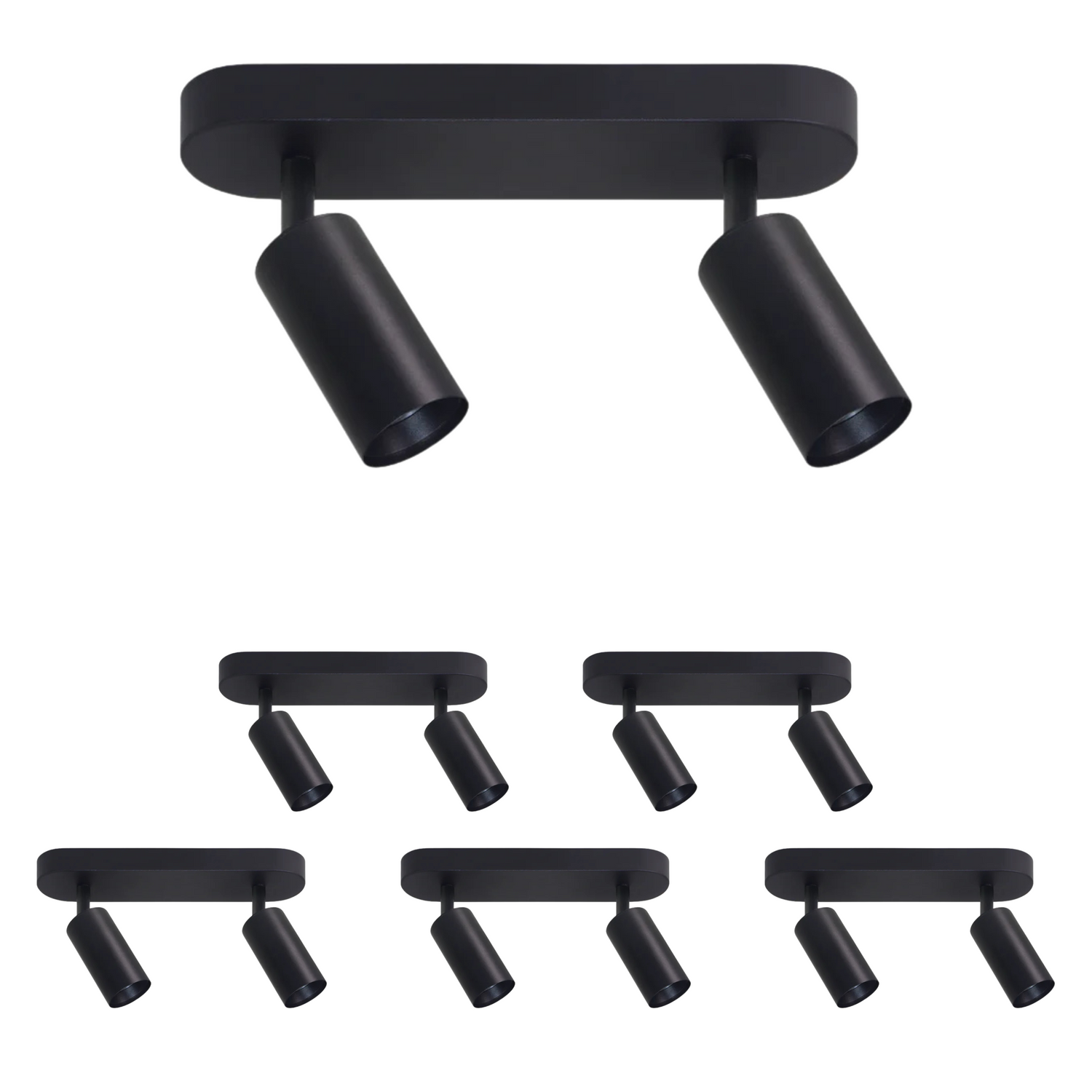 6er Pack Schwenkbarer LED Aufbauspot mit GU10 Fassung, 2-flammig, schwarz, IP20, Aluminium.
