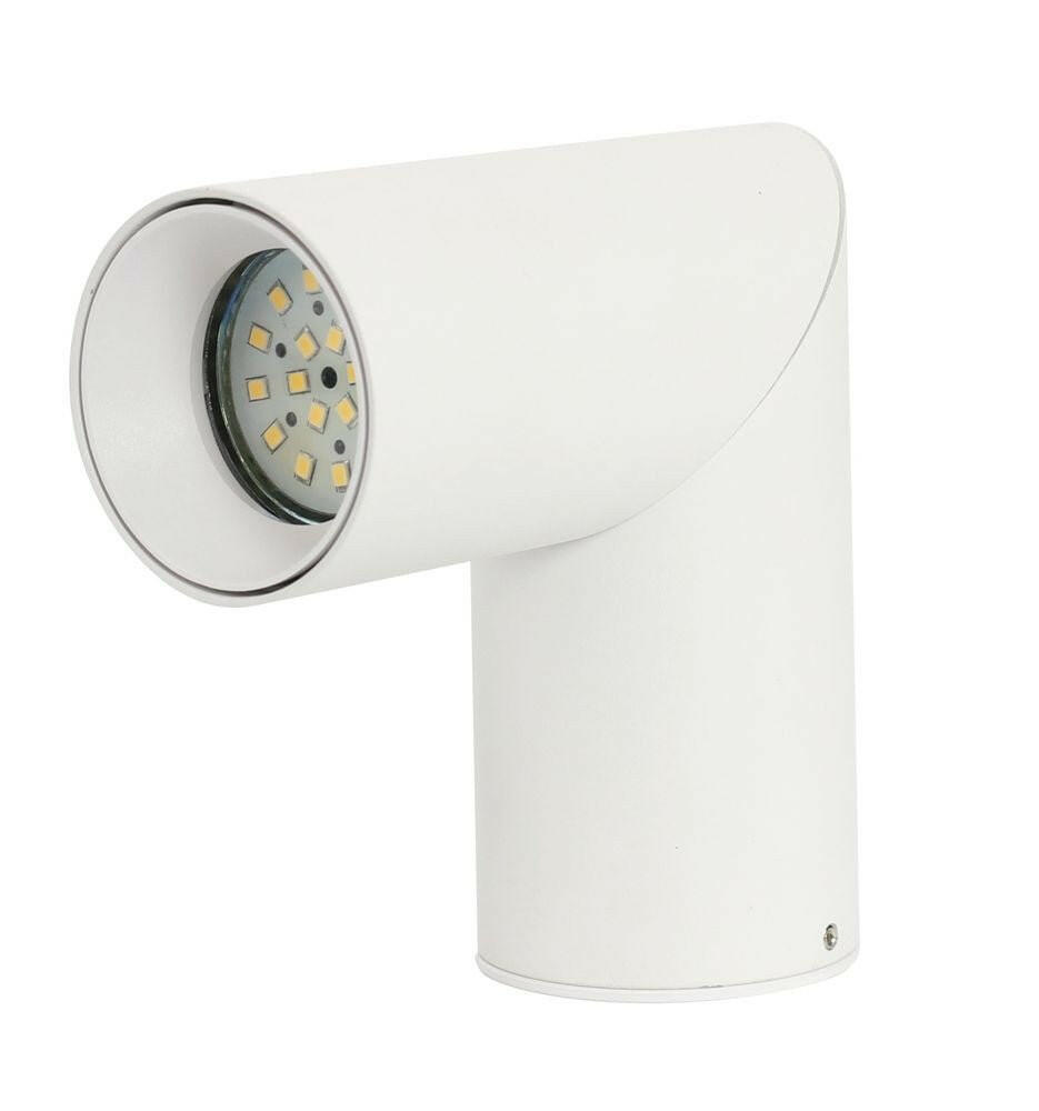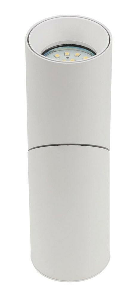 Mittig schwenkbarer, runder Aufbauspot aus Aluminium für GU10 oder MR16 Leuchtmittel in der Farbe weiß.