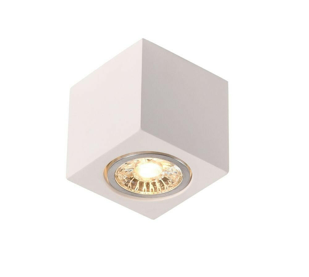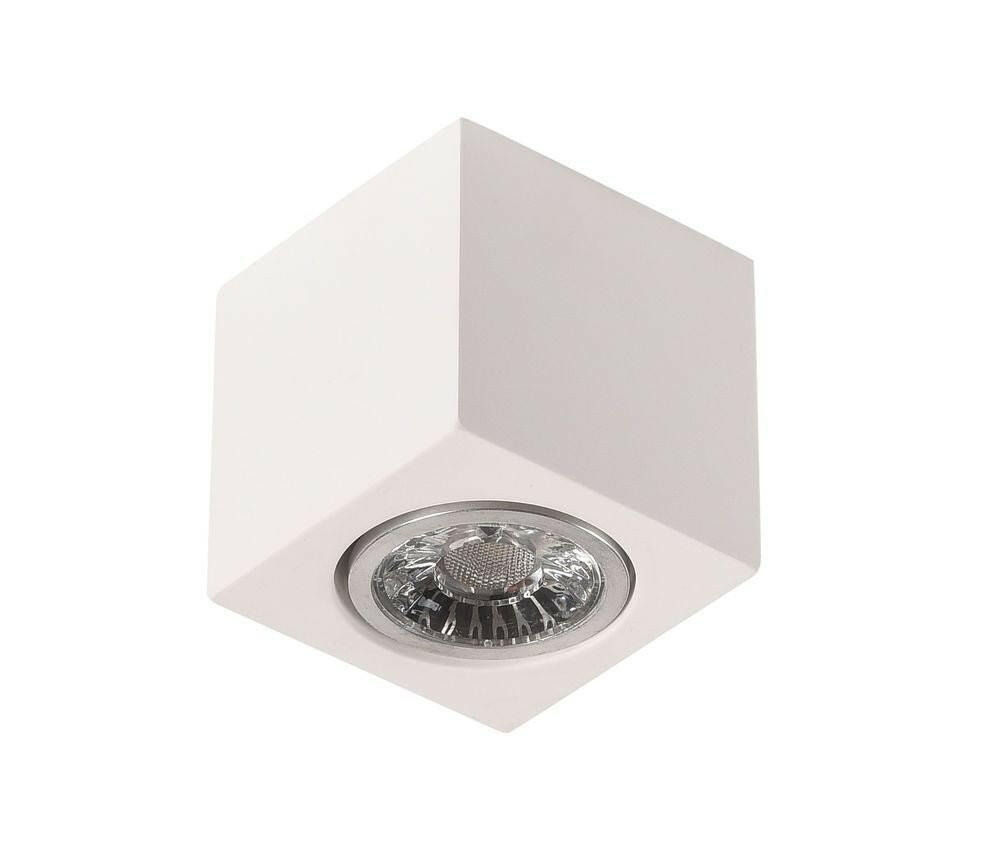 Deckenaufbauspot für eine nahtlose Trockenbaumontage. Der weiße Aufbauspot besteht aus Aluminium und Gips und ist geeignet für GU10 oder MR16 Leuchtmittel mit max. 35 Watt Leistung.