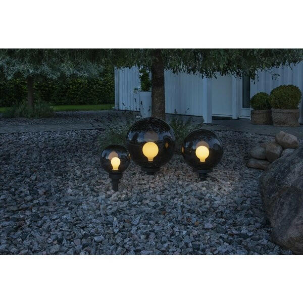 Stilvolle Gartenleuchte in Form einer rauchfarbenen Acryl-Kunststoffkugel mit einem Durchmesser von 30 cm. Beleuchten Sie Ihren Garten besonders für Anlässe wie Geburtstage, Familienfeiern oder Feste mit dieser stimmungsvollen Gartenleuchte.