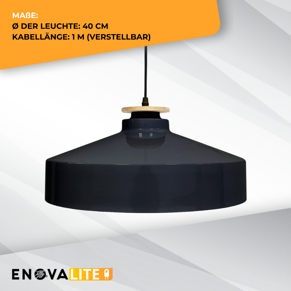 Elegante Pendelleuchte in Schwarz, runde Form, aus Stahl, E27-Fassung, IP20, Ø40 cm
