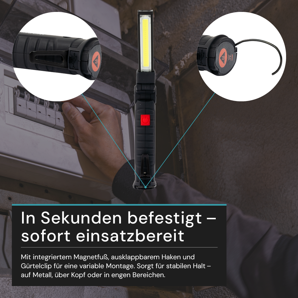 • Magnetfuß & Aufhängehaken – perfekt für Werkstatt, Auto, Outdoor