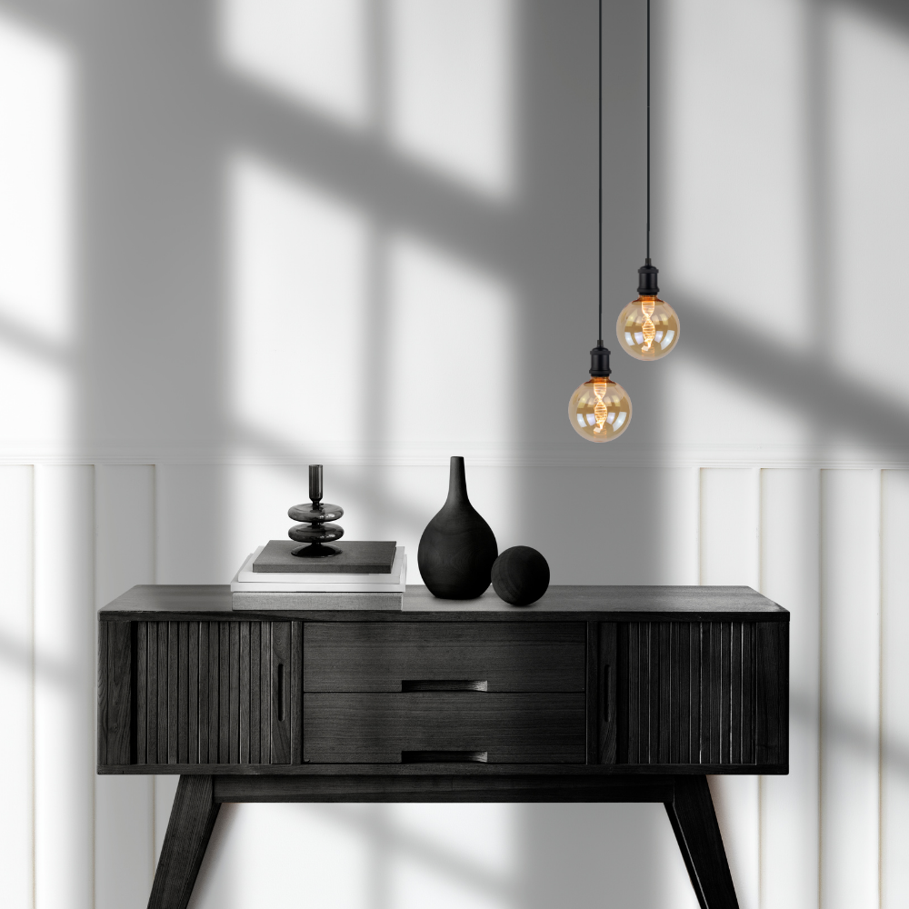 ENOVALITE LED Filament Leuchtmittel "DNA Amber" E27, Dimmbar, Warmweiß inkl schwarzer E27-Fassung mit Textilkabel.