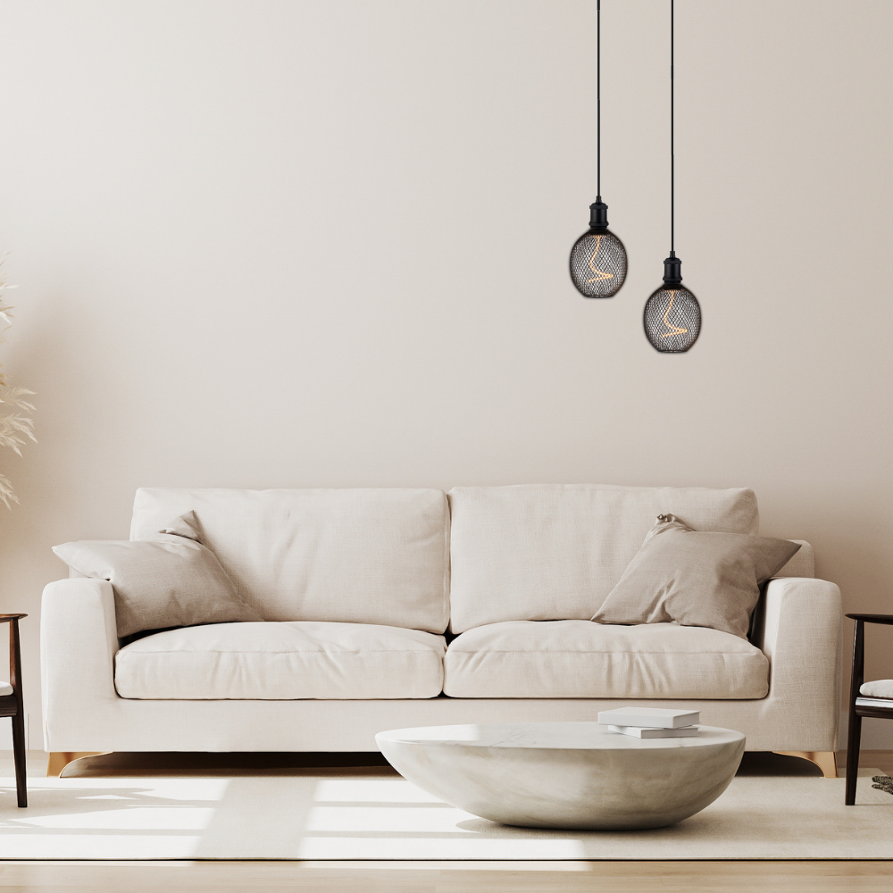 Die abgebildete Leuchte besticht durch ihr einzigartiges und modernes Design. Mit ihrem filigranen Drahtgeflecht in Eiform zieht sie alle Blicke auf sich und setzt stilvolle Akzente in jedem Raum. Der warme Lichtschein, der durch das geometrische Muster des Gitters hindurchstrahlt, sorgt für eine behagliche Atmosphäre und verleiht dem Raum eine elegante Note. Diese Designerleuchte vereint modernes Industriedesign mit Funktionalität und ist ein echter Hingucker – perfekt für stilbewusste Einrichtungsliebhaber. Ideal als dekoratives Highlight im Wohn-, Ess- oder Schlafzimmer!