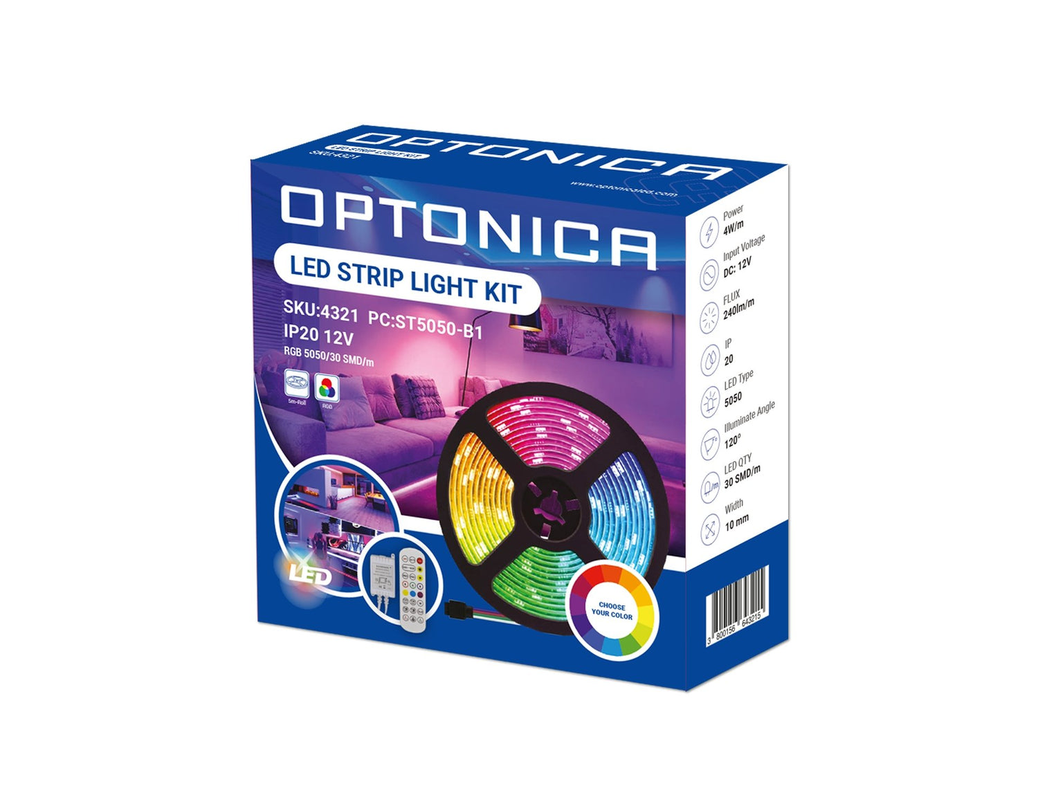 Der mitgelieferte 5m lange LED-Streifen ist mit 30 SMD-LEDs pro Meter bestückt (Typ 5050 RGB). Der LED-Streifen wird durch einen Stecker ganz einfach mit dem Controller verbunden.