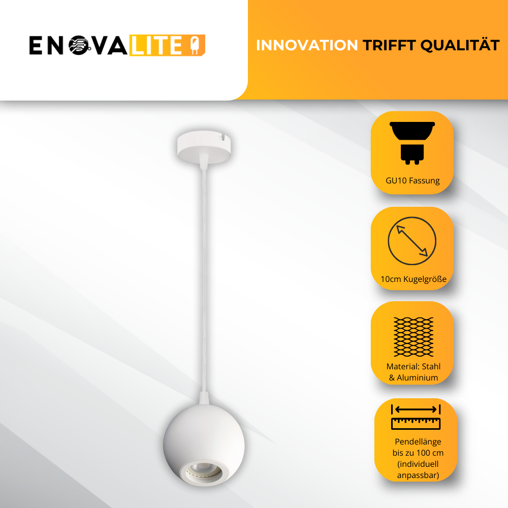 ENOVALITE LED-Pendelleuchte GLOBE, 1-flammig, GU10, Schwarz oder Weiß – Eleganz für Ihre Räume