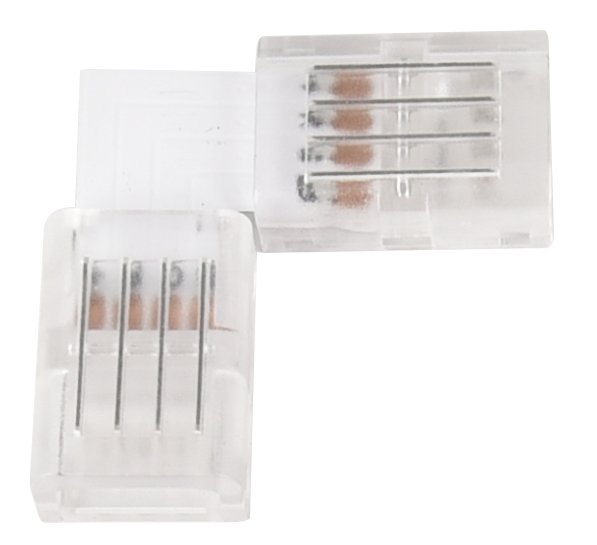 LED-Streifen Verbinder, L-förmig, 4 polig, für 10 mm RGB LED-Streifen geeignet.