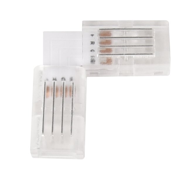 LED-Streifen Verbinder, L-förmig, 4 polig, für 8 mm RGB LED-Streifen geeignet.