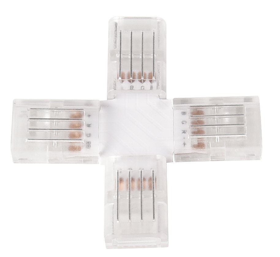 LED-Streifen Verbinder, X-förmig, 4 polig, für 10 mm RGB LED-Streifen geeignet.